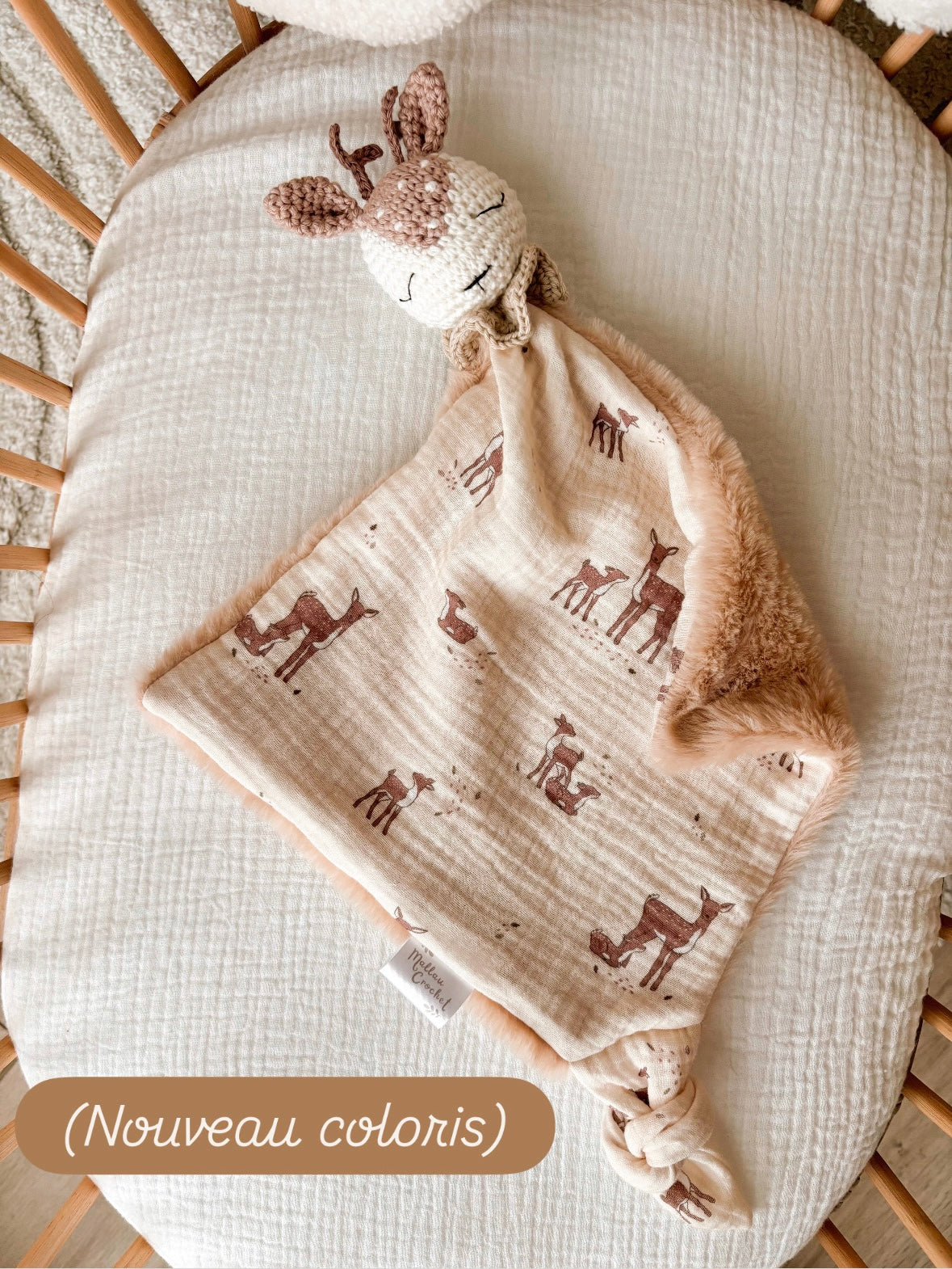 Doudou Cerf personnalisé au crochet avec prénom de bébé